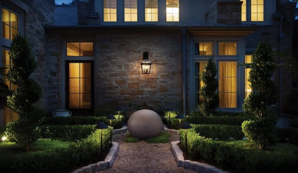 Rustic outdoor lighting ideas such as lantern-style fixtures or warm string lights create a cozy backyard atmosphere. Avoid harsh white lights. Warm tones feel more natural and welcoming.