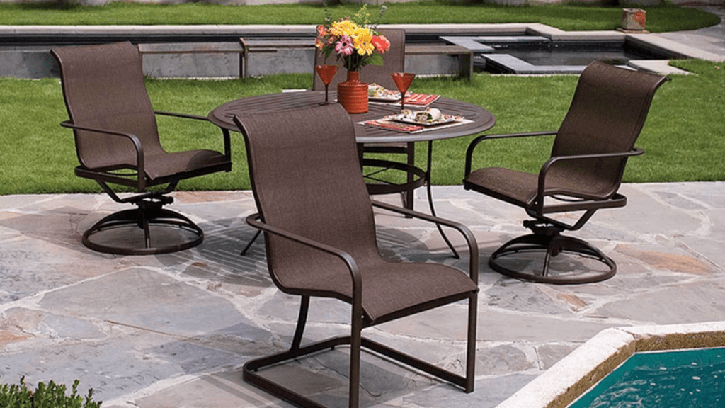 This quick-drying feature makes sling furniture ideal for poolside lounging or beachside patios. If you love poolside comfort, check out our guide on aluminum strap patio furniture for more inspiration.