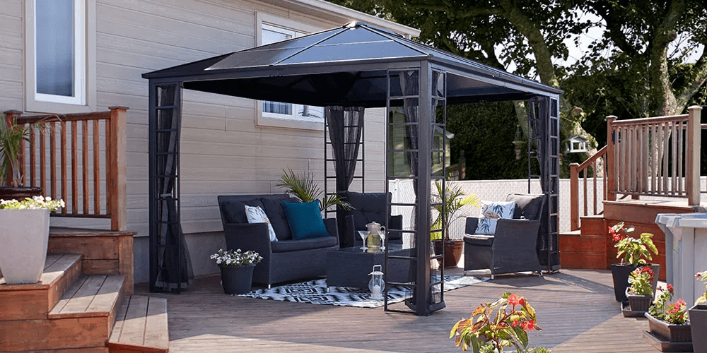 A canopy not only offers shade but also enhances the overall design, giving your gazebo a cozy, finished look. Pairing your gazebo with stylish patio arrangements can elevate the look — check out our guide on aluminum sling patio furniture for durable and comfortable outdoor seating options.